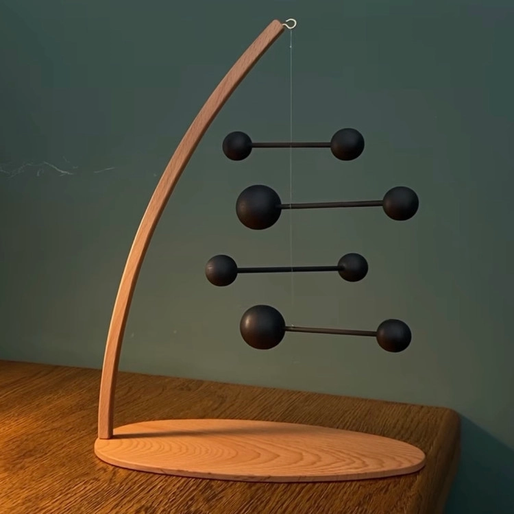 공간의 공기의 흐름으로 모빌의 느린 회전을 바라보고 있으면